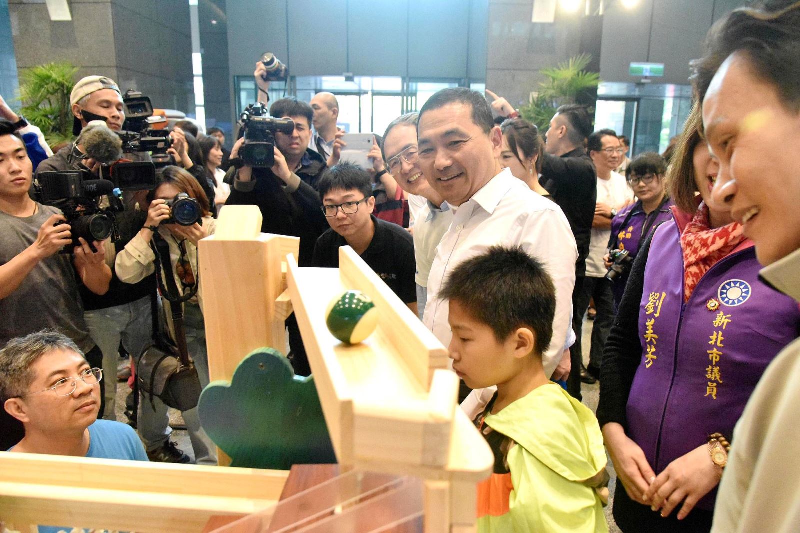 (記者馮國寶報導)想玩競速遊戲嗎?如何玩AR(擴增實境)走出「魔法森林迷宮」呢?紙箱又是如何變成大型機器人的?來趟「新北創客young魔法主題展」就都明白了!市長侯友宜今(6)日邀請大家一起到市府一樓大廳做「創客」,活動為期三週。市長說「想得出來,就做得出來」。