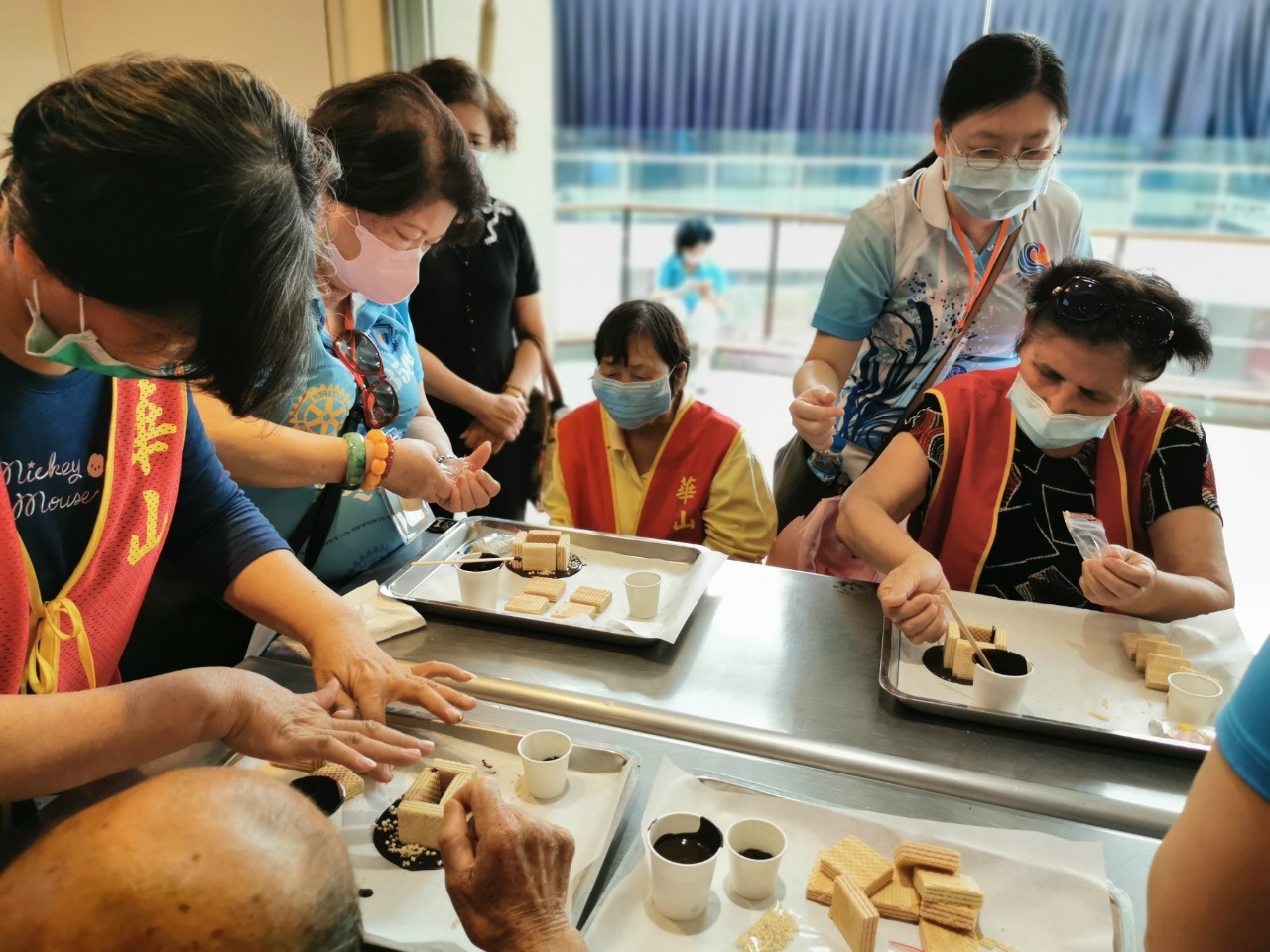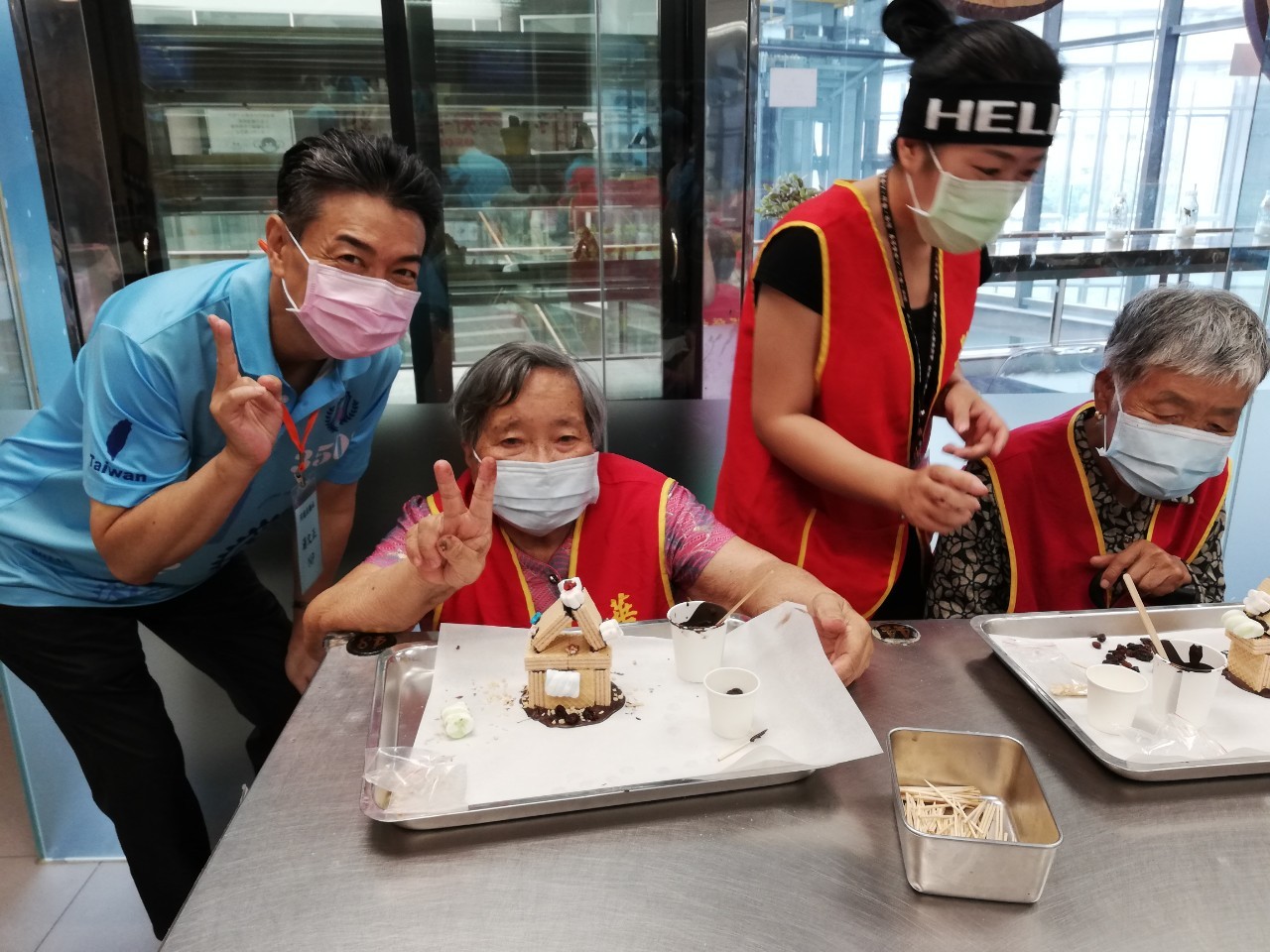 重陽節前夕,旭德扶輪社號召40位社友擔任「一日義工」,陪伴華山孤老一同暢遊巧克力共和國,在解說員細心的帶領下,一覽巧克力的生產過程,現場也帶領長輩們運用美味餅乾、彩色糖粉及手工巧克力發揮創意,用片片餅乾搭起小屋,用色彩繽紛的巧克力糖漿加以點綴,手作專屬的「老寶貝巧克屋」完成了,透過活動促進長輩手腦並用,也期盼在九九重陽這一天,祝福長輩長壽久久,旭德扶輪社藉由拋磚引玉,身體力行號召大眾加入「愛老人」行列,共同守護孤單身影。