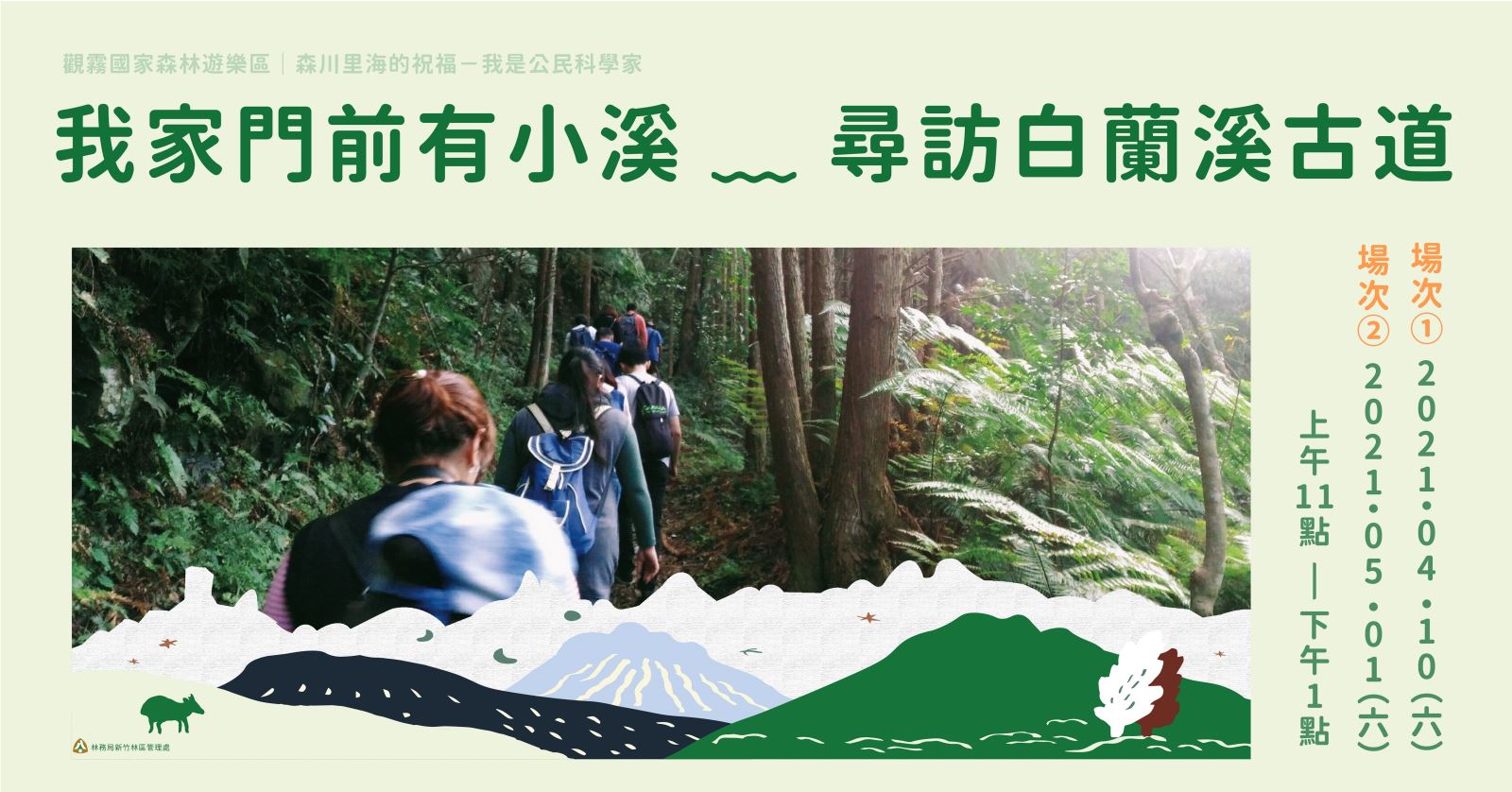 (記者馮大衛,馮國寶新竹縣報導)觀霧國家森林遊樂區及其周邊地區為泰雅族傳統生活範圍,為使遊客認識觀霧地區泰雅族與山林間的人文歷史與過往風情,林務局新竹林區管理處將於今(110)年4月10日(六)及5月1日(六)上午11點至下午1點,在新竹縣五峰鄉白蘭部落舉辦2場次「我家門前有小溪─尋訪白蘭溪古道」戶外導覽觀察活動。每場活動各限額40名(共計80名),採網路事先報名,報名費每人新臺幣350元,並將於2月22日(一)晚上8點起開放報名。想要了解原住民族人文歷史與豐富文化的民眾及觀霧忠實粉絲們,請千萬不要錯過。