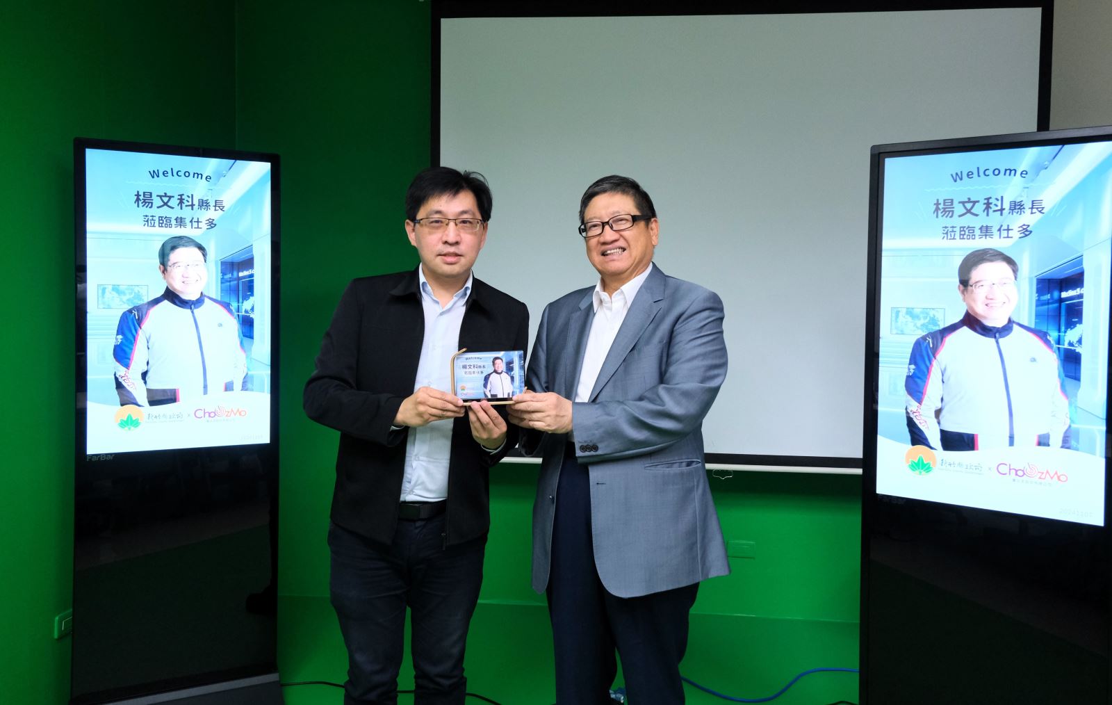 楊縣長先聽取集仕多公司總經理梁哲瑋的公司介紹簡報,了解集仕多公司是負責開發適用於商務場域的AaaS(Automation as a Service,「自動化即服務」),提供真人形象的AI即時問答體驗,如AI主播、AI客服、AI陪伴等,楊縣長也在團隊的指導下,體驗AI人像建模動作拍攝,做出微笑、點頭、揮手等建模動作,提供團隊後續完善楊縣長的AI人物影片製作。